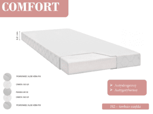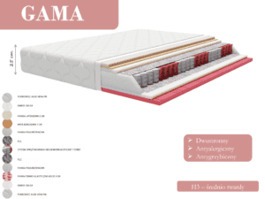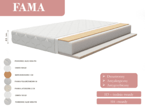 - Stelaż: listwy drewniane sprężynujące