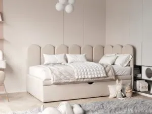 Łóżko wyposażone jest w praktyczną szufladę na pościel, co sprawia, że organizacja przestrzeni staje się łatwiejsza. Wysuwana szuflada pomieści kołdry, poduszki, a także zabawki czy inne drobiazgi, pomagając utrzymać porządek w pokoju