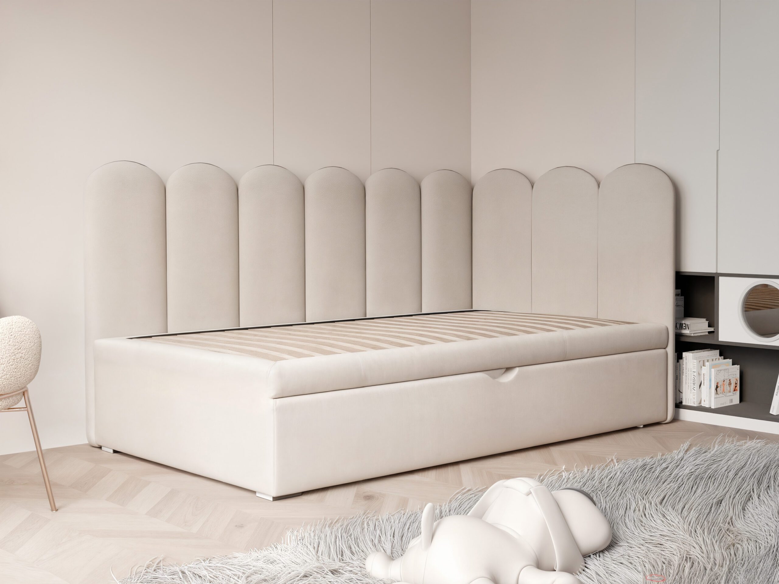 Forma mebla nawiązuje do świata dziecięcej wyobraźni i nadaje wnętrzu przyjazny charakter. Design sprawia, że mebel staje się naturalnym elementem pokoju dziecka, a nie tylko jego wyposażeniem.