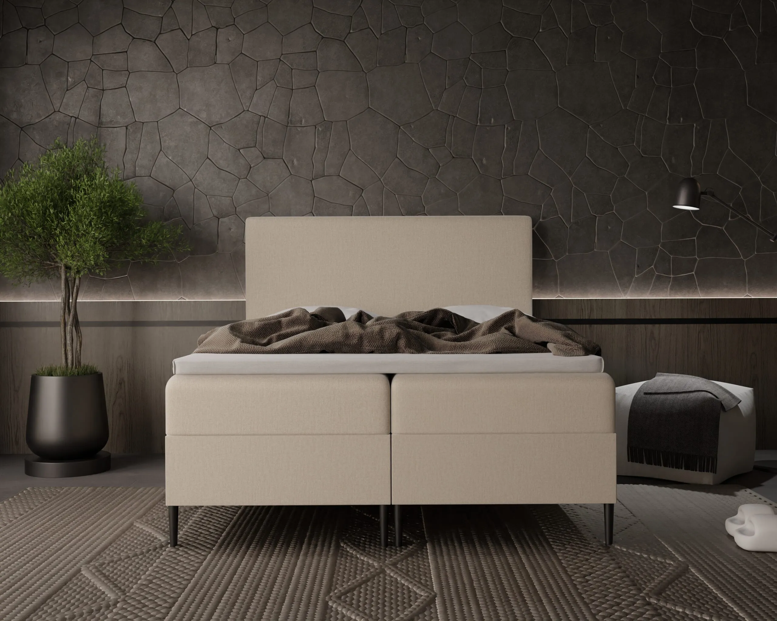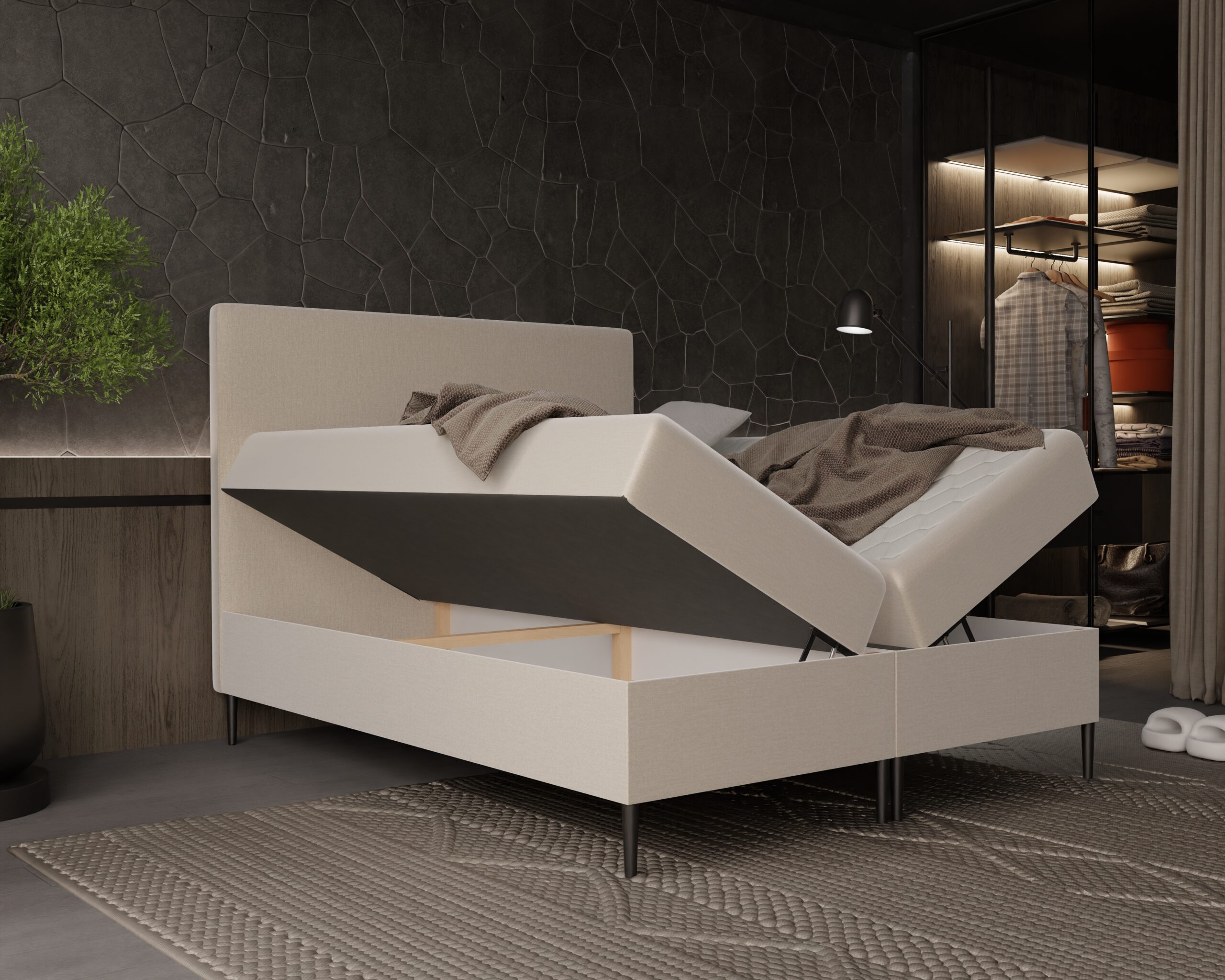 Eleganckie łóżko kontynentalne ALEX  z pojemnikiem na pościel, które łączy nowoczesny design z wysoką funkcjonalnością. Idealne rozwiązanie dla osób, które szukają wygody i dodatkowej przestrzeni do przechowywania w sypialni.