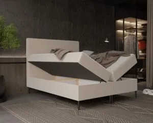 Pojemnik na pościel, łóżko wyposażone jest w obszerny pojemnik, otwierany od góry przy pomocy mechanizmu podnoszącego, co ułatwia dostęp do schowka i pozwala na wygodne przechowywanie pościeli, koców lub innych rzeczy.