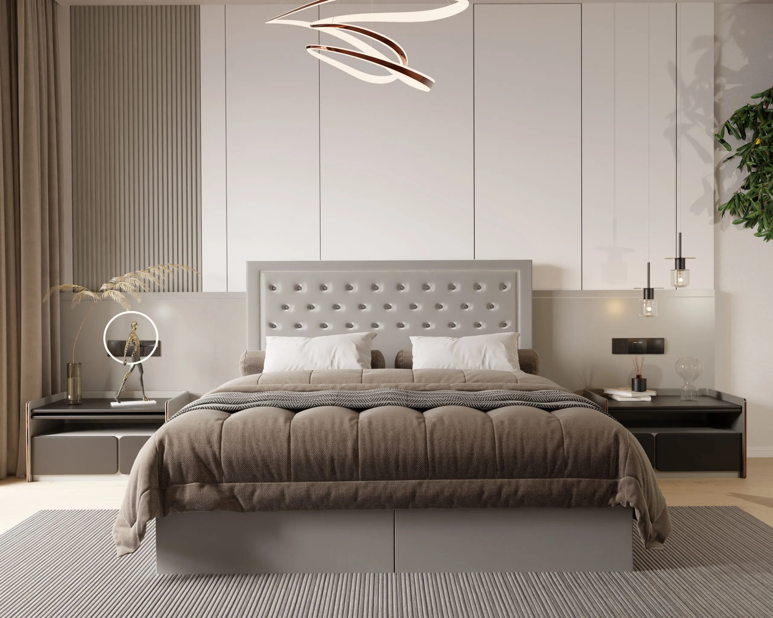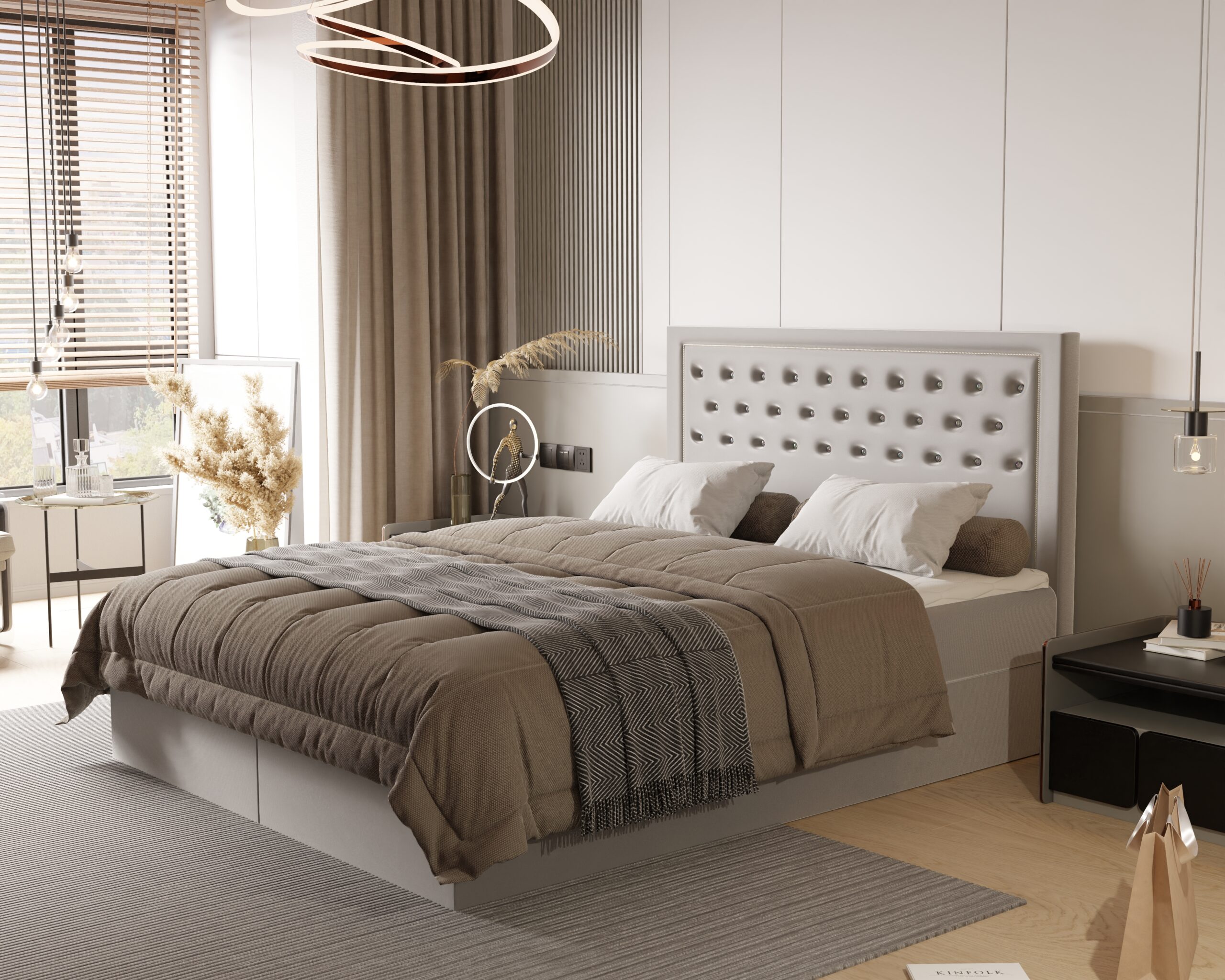 Łóżko kontynentalne KIRA 2  z diamentami i obramówką z diamentów na zagłówku to wyraz luksusu i elegancji w sypialni.
