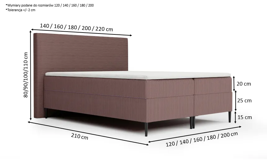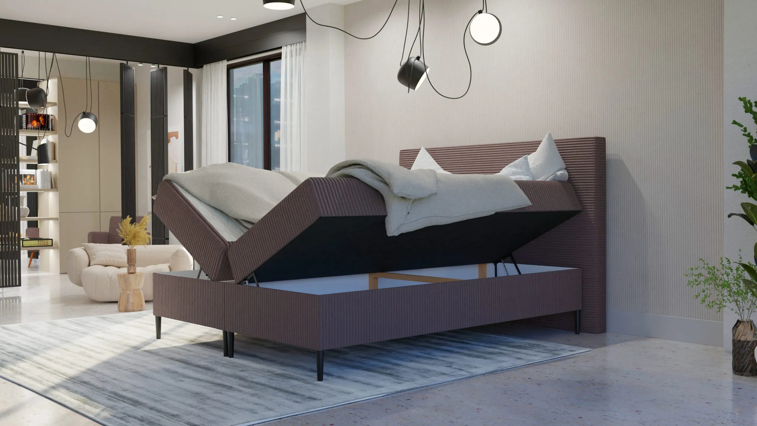 Solidna konstrukcja łączy się z wbudowanym materacem kieszeniowym 7-strefowym, który zapewnia optymalne wsparcie dla kręgosłupa i komfortowy sen.