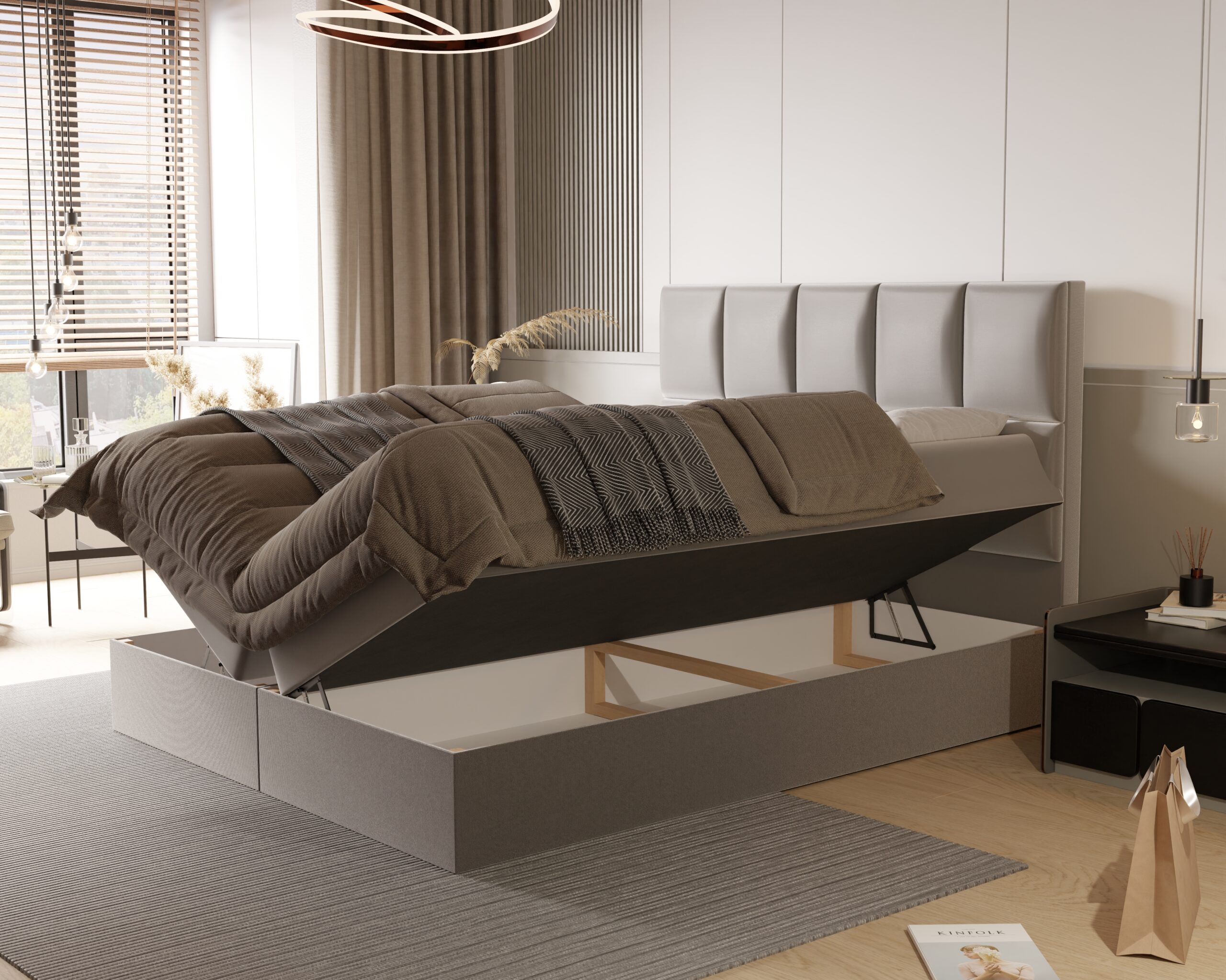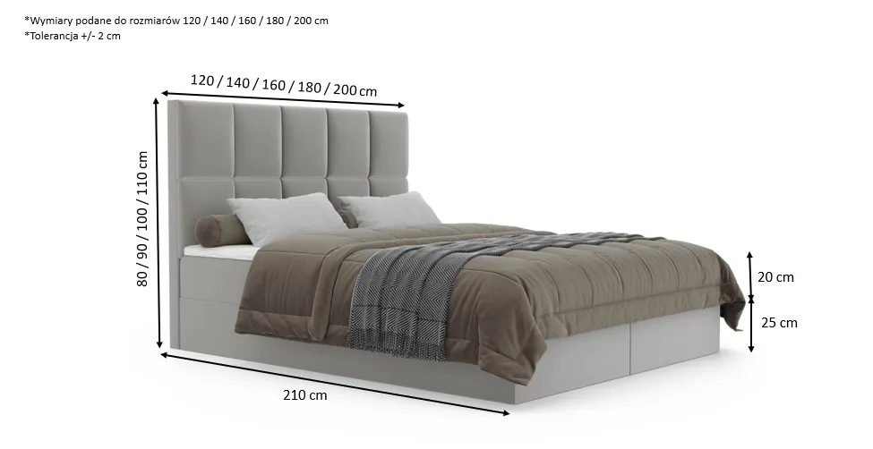 Posiada wbudowany materac kieszeniowy 7-strefowy oraz dwa osobne pojemniki na pościel otwierające się do boku.
