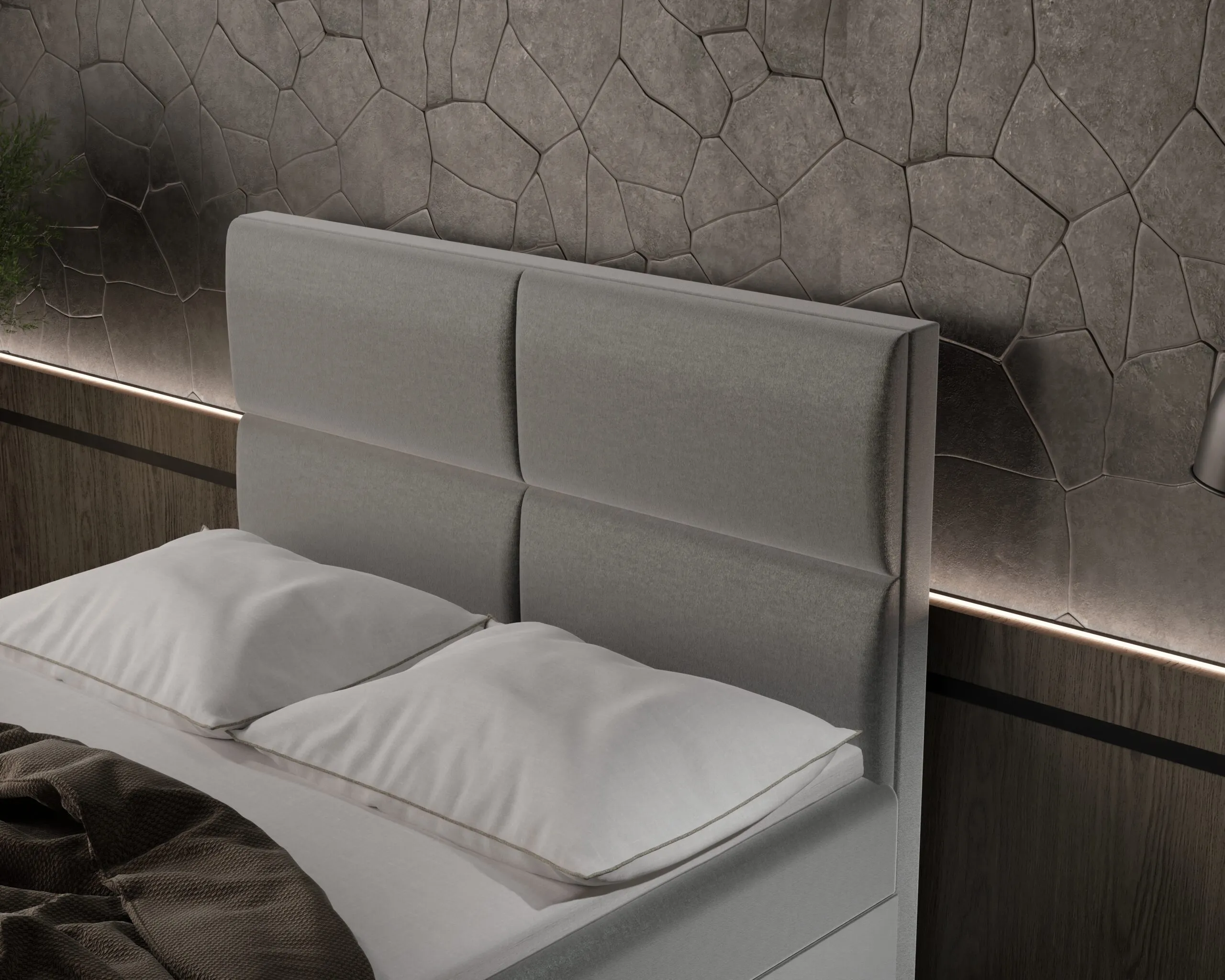 Łóżko kontynentalne TIMI to elegancki i funkcjonalny mebel, który łączy w sobie nowoczesny design oraz komfort użytkowania.