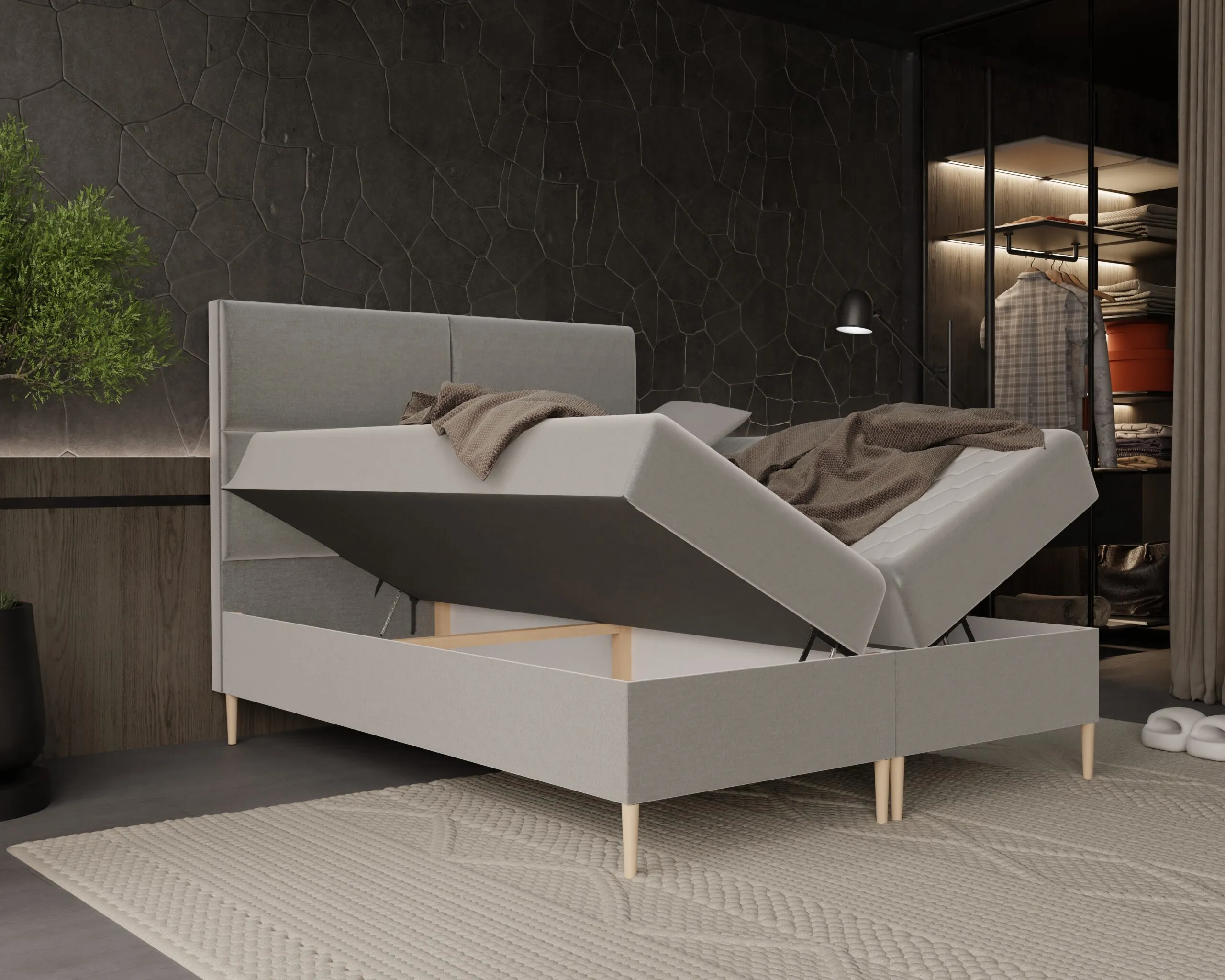Dodatkowym atutem takich łóżek są dwa duże pojemne pojemniki na pościel otwierające się do boku oraz smukłe 15 cm nogi.