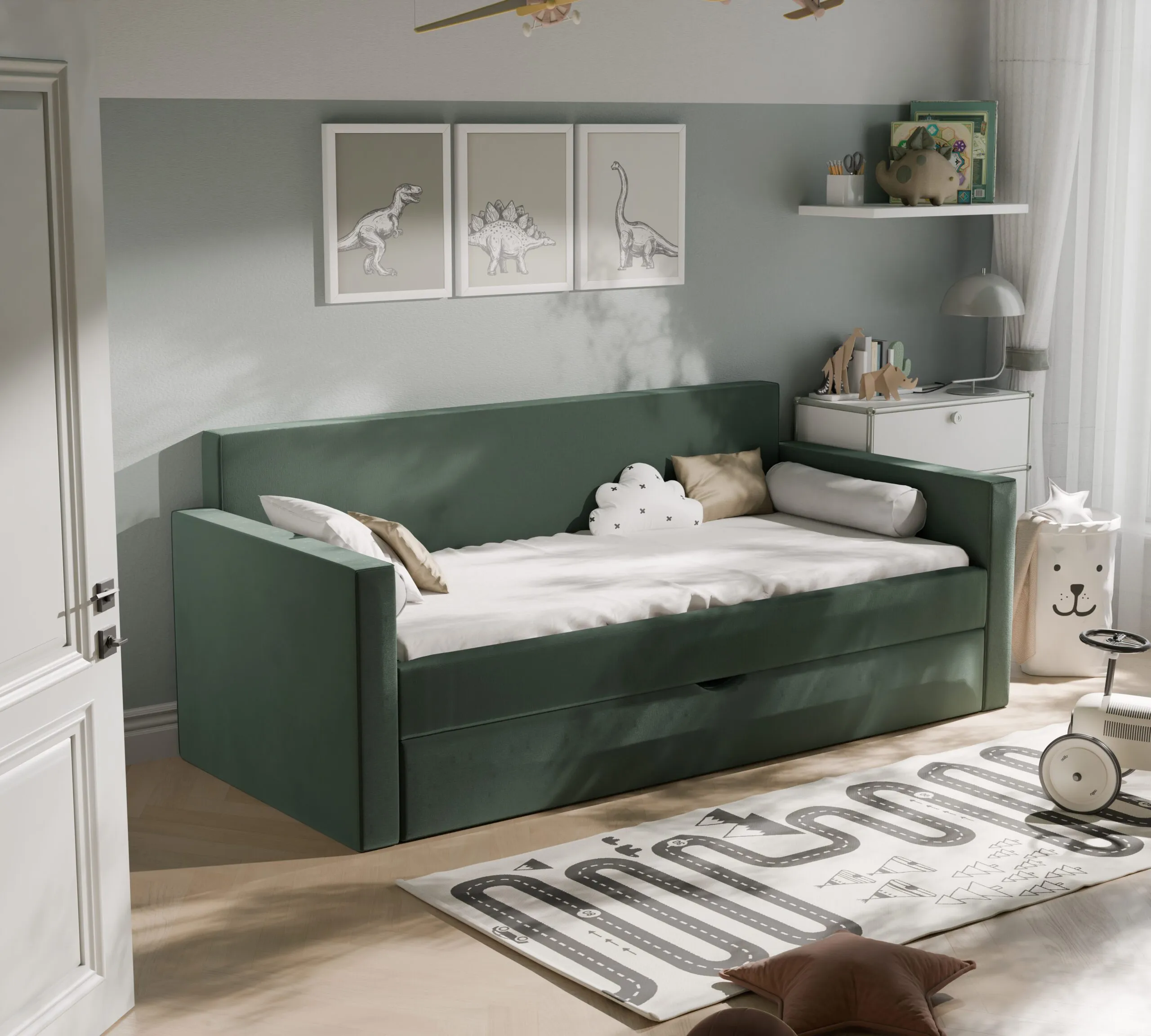 Łóżko wyposażone jest w praktyczną szufladę na pościel, co sprawia, że organizacja przestrzeni staje się łatwiejsza. Wysuwana szuflada pomieści kołdry, poduszki, a także zabawki czy inne drobiazgi, pomagając utrzymać porządek w pokoju