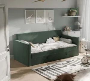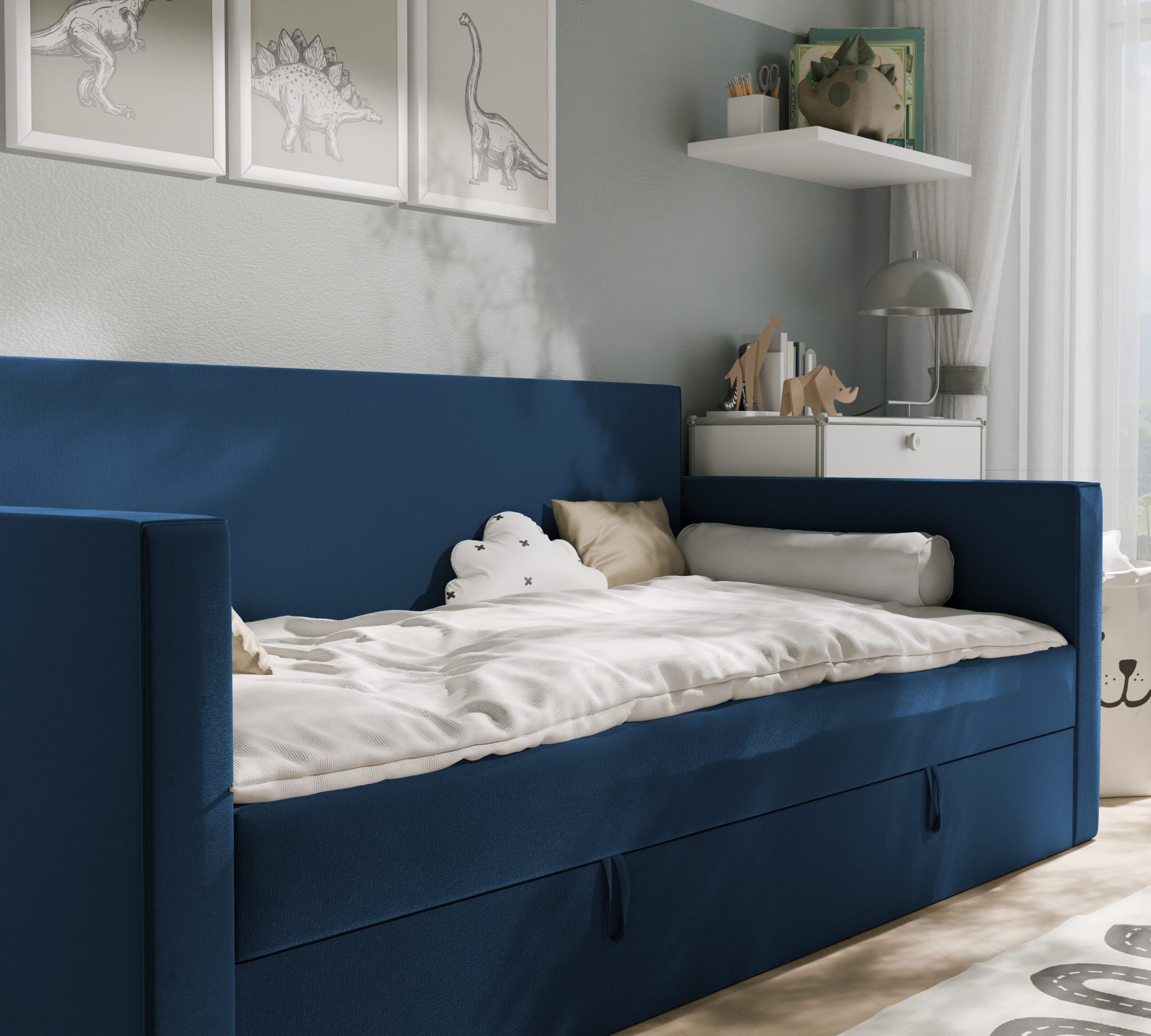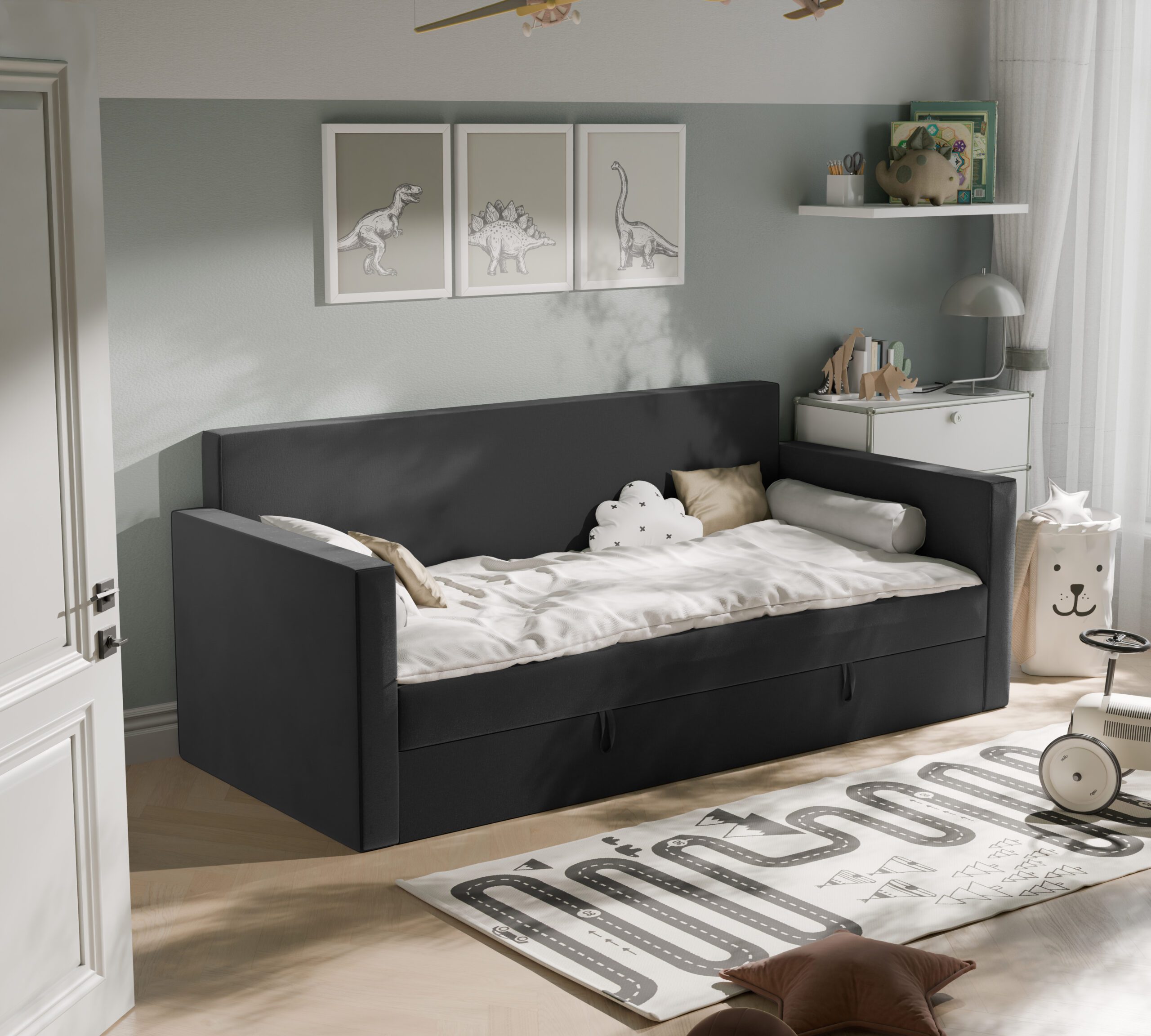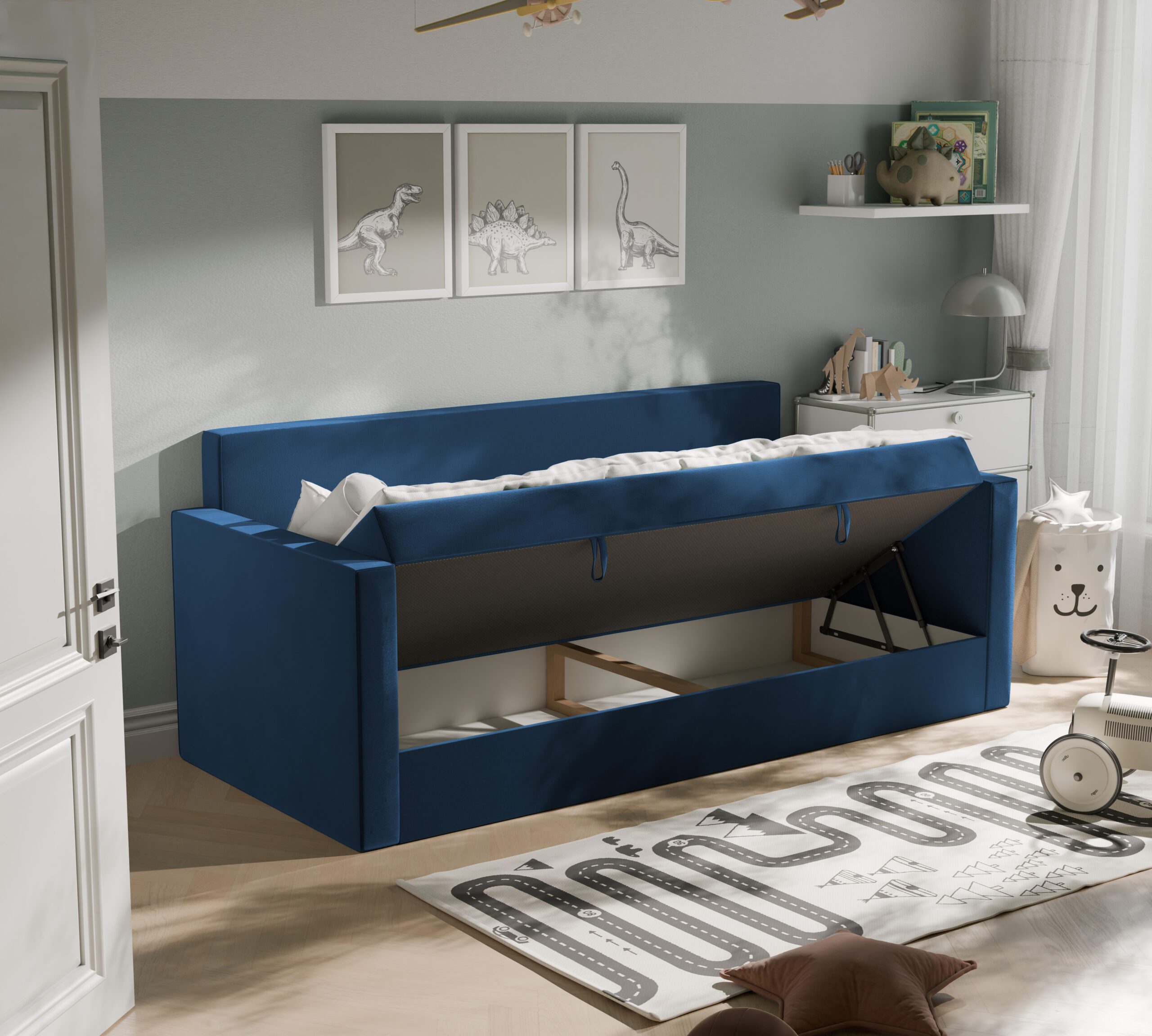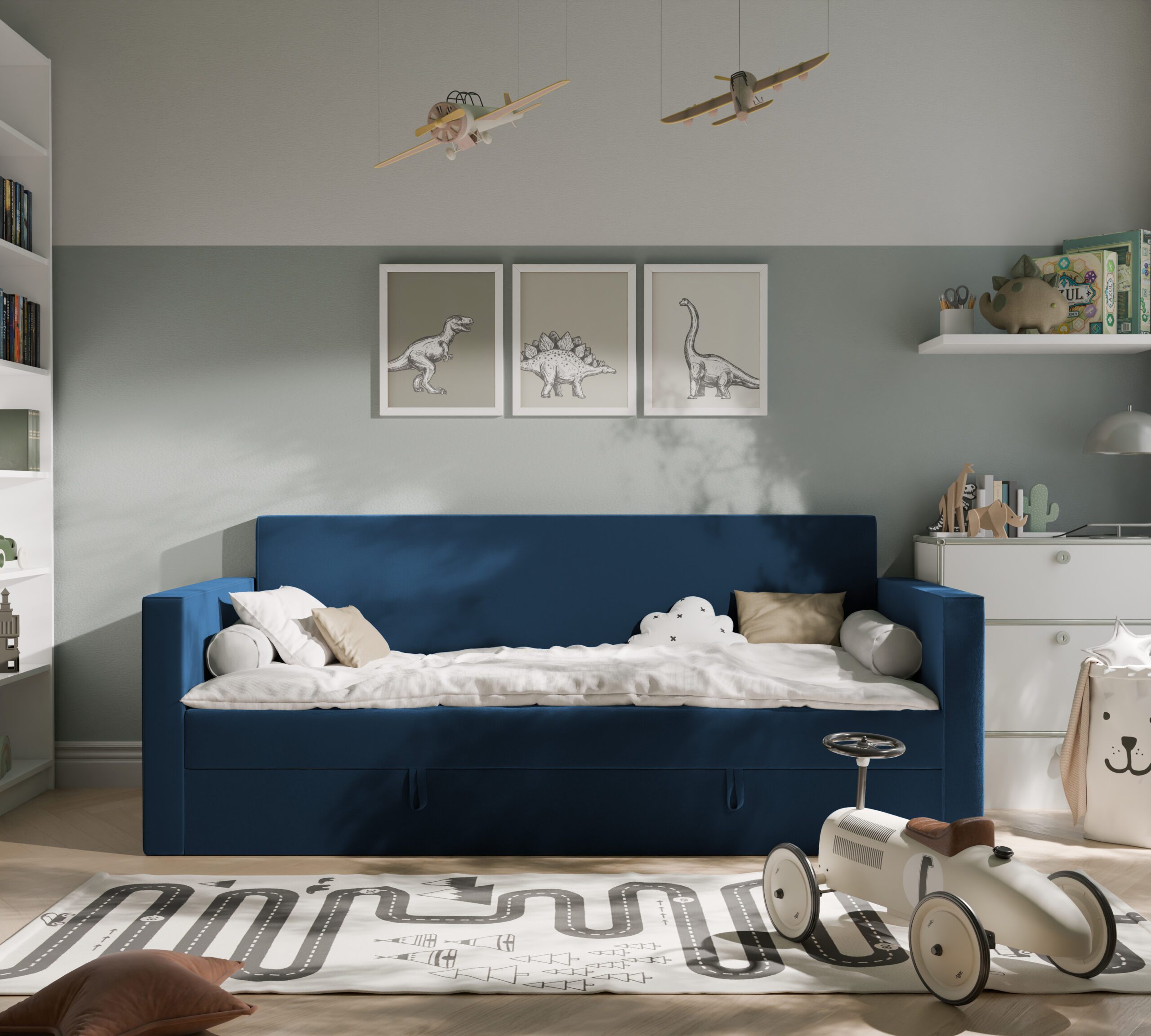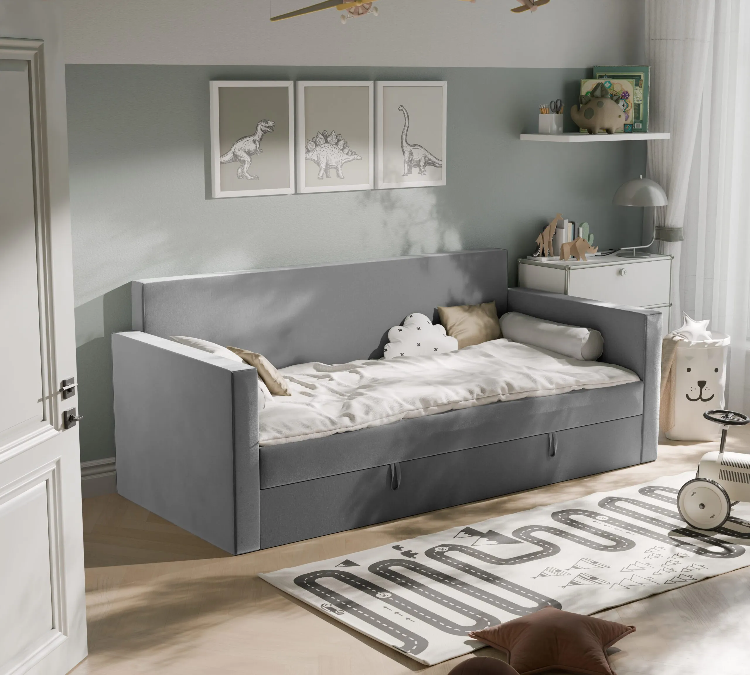 Nowoczesne i praktyczne rozwiązanie do pokoju najmłodszych. Zaprojektowane z myślą o wygodzie, bezpieczeństwie i estetyce, świetnie sprawdzi się zarówno jako miejsce do spania, jak i dzienna sofa.