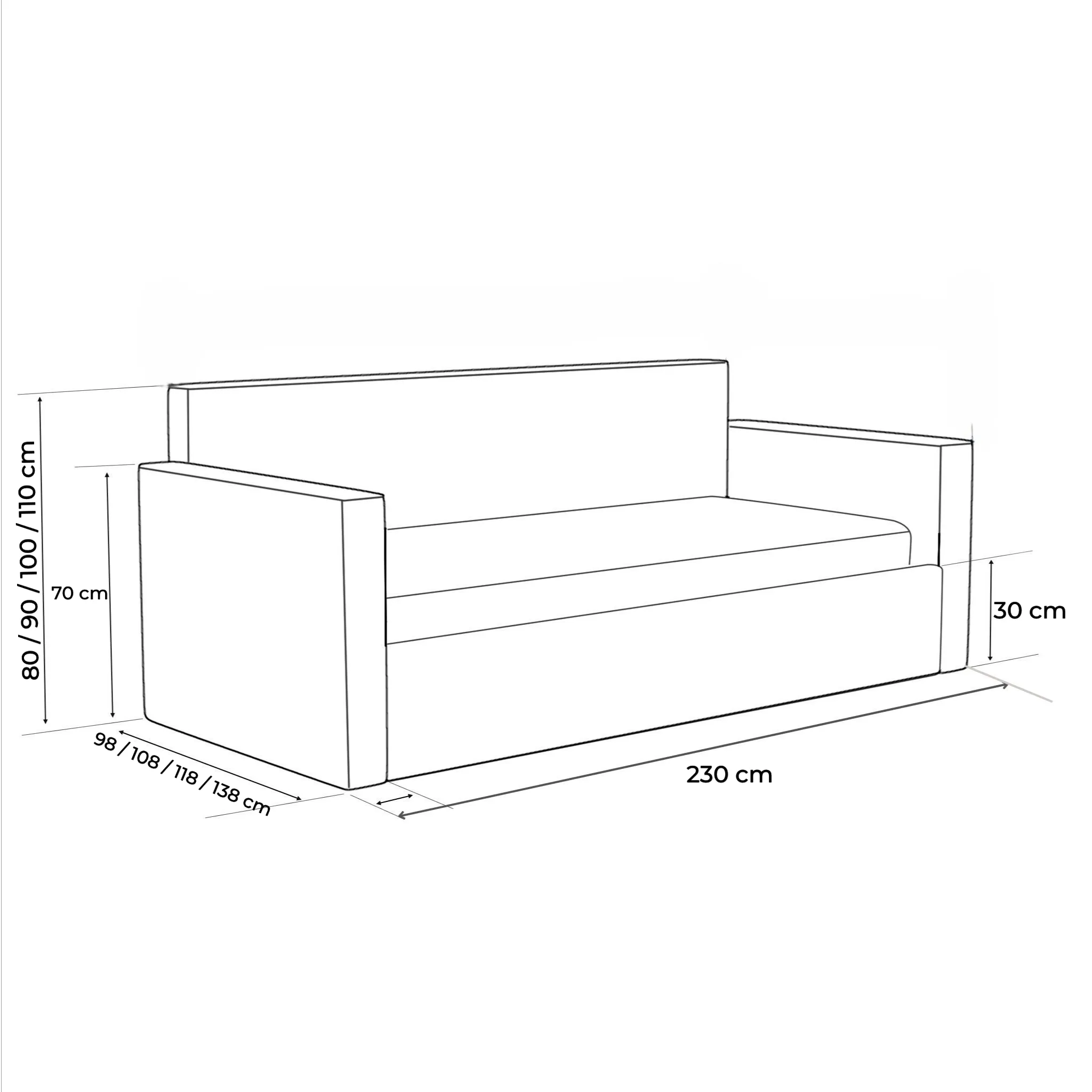 • Szerokość całkowita: 98/108/118/138 cm