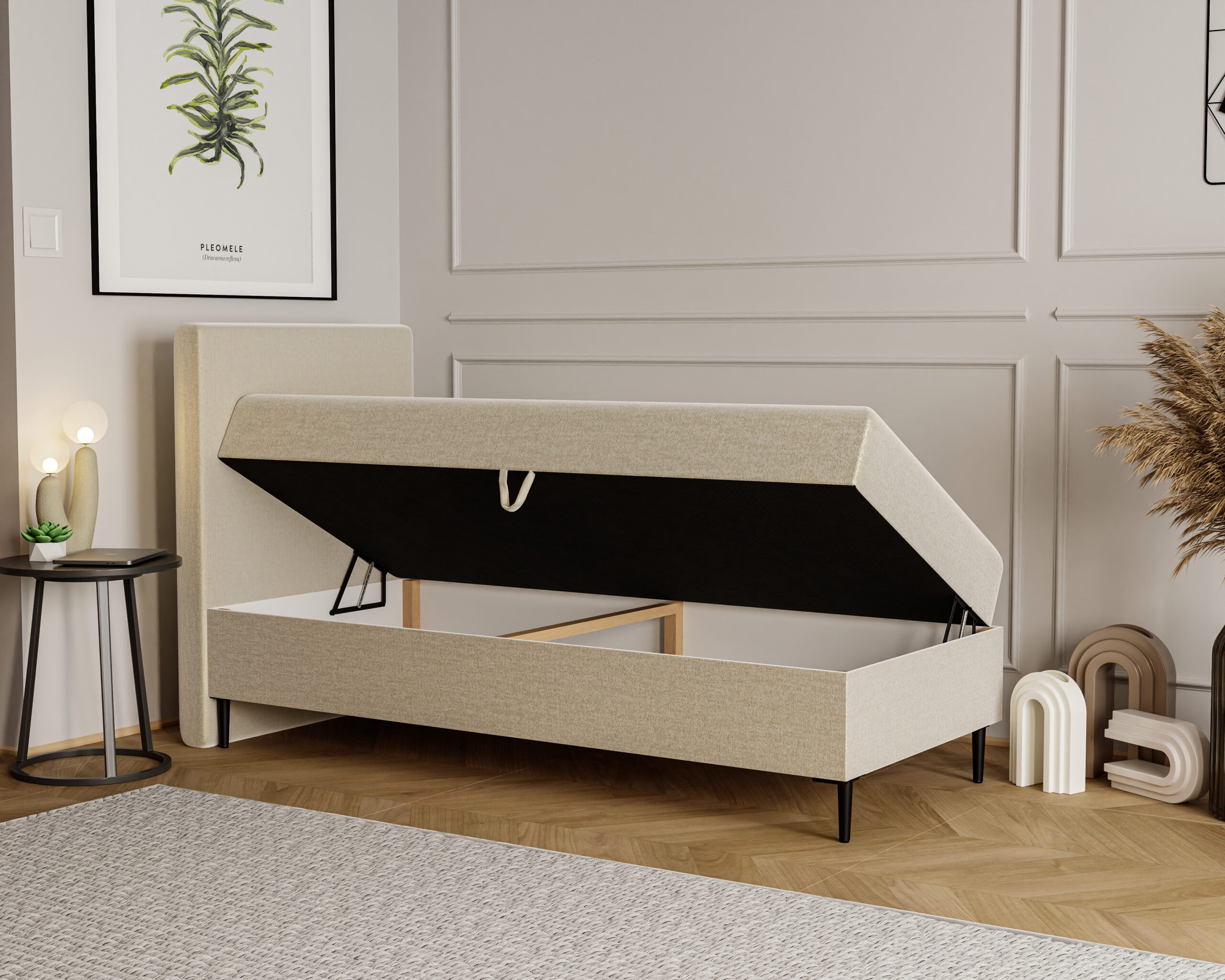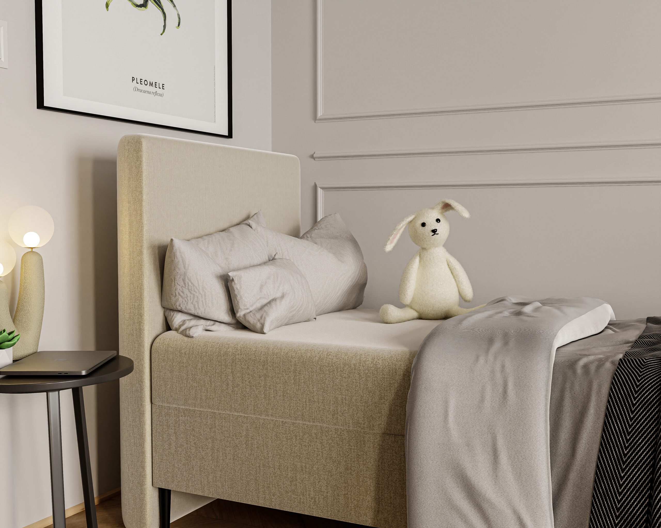 Łóżko wyposażone jest w podnoszony pojemnik na pościel , co sprawia, że organizacja przestrzeni staje się łatwiejsza.