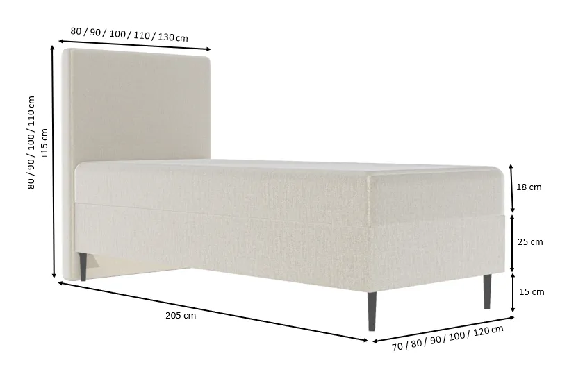 - Szerokość powierzchni spania: 70/80/90/100/120 cm