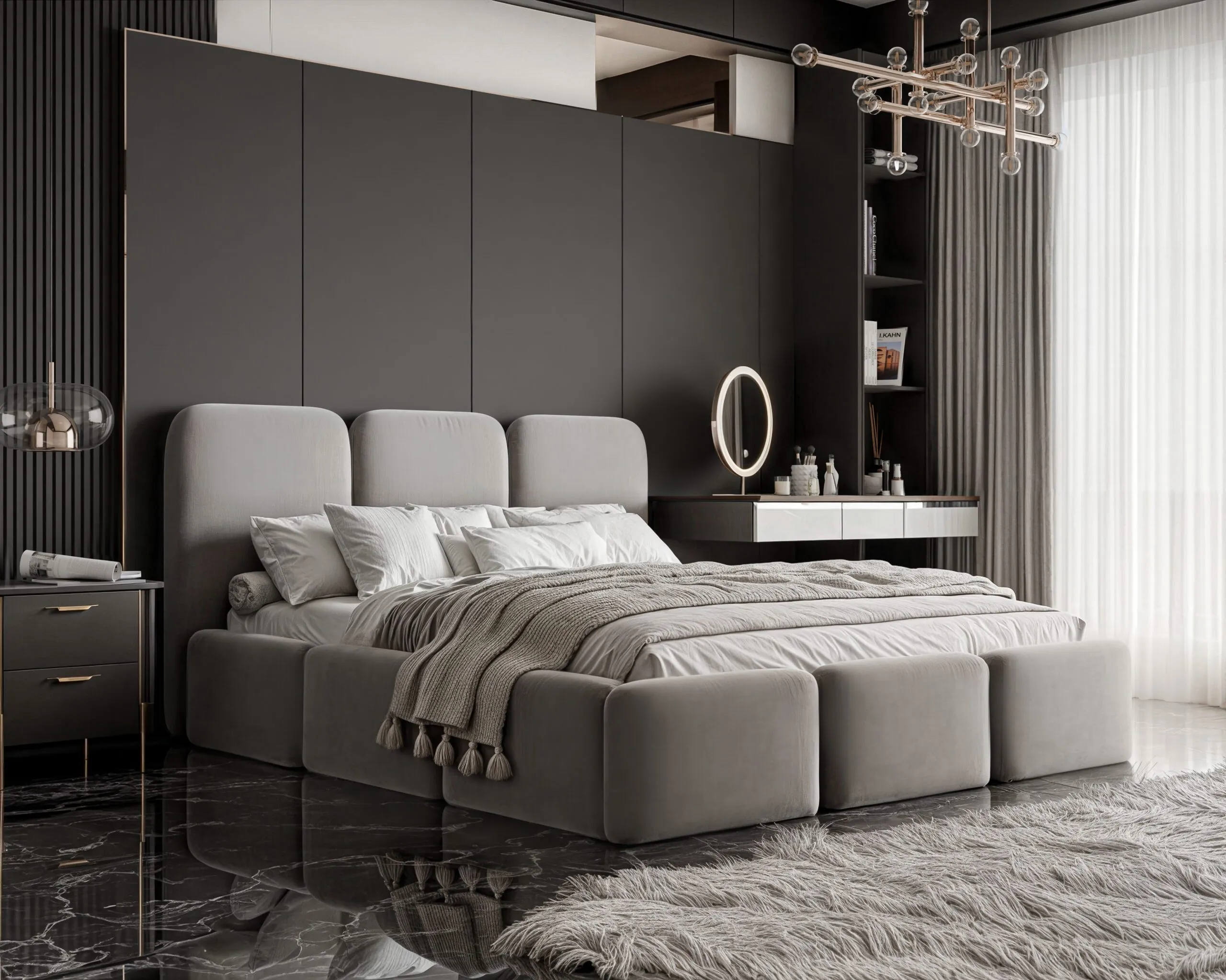 Łóżko sypialniane AYLA to połączenie nowoczesnego designu z funkcjonalnością, które wprowadzi do Twojej sypialni elegancję i komfort.​