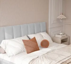 Posiada tapicerowany zagłówek o miękkiej strukturze, zapewniający komfort podczas siedzenia, czytania czy oglądania telewizji.