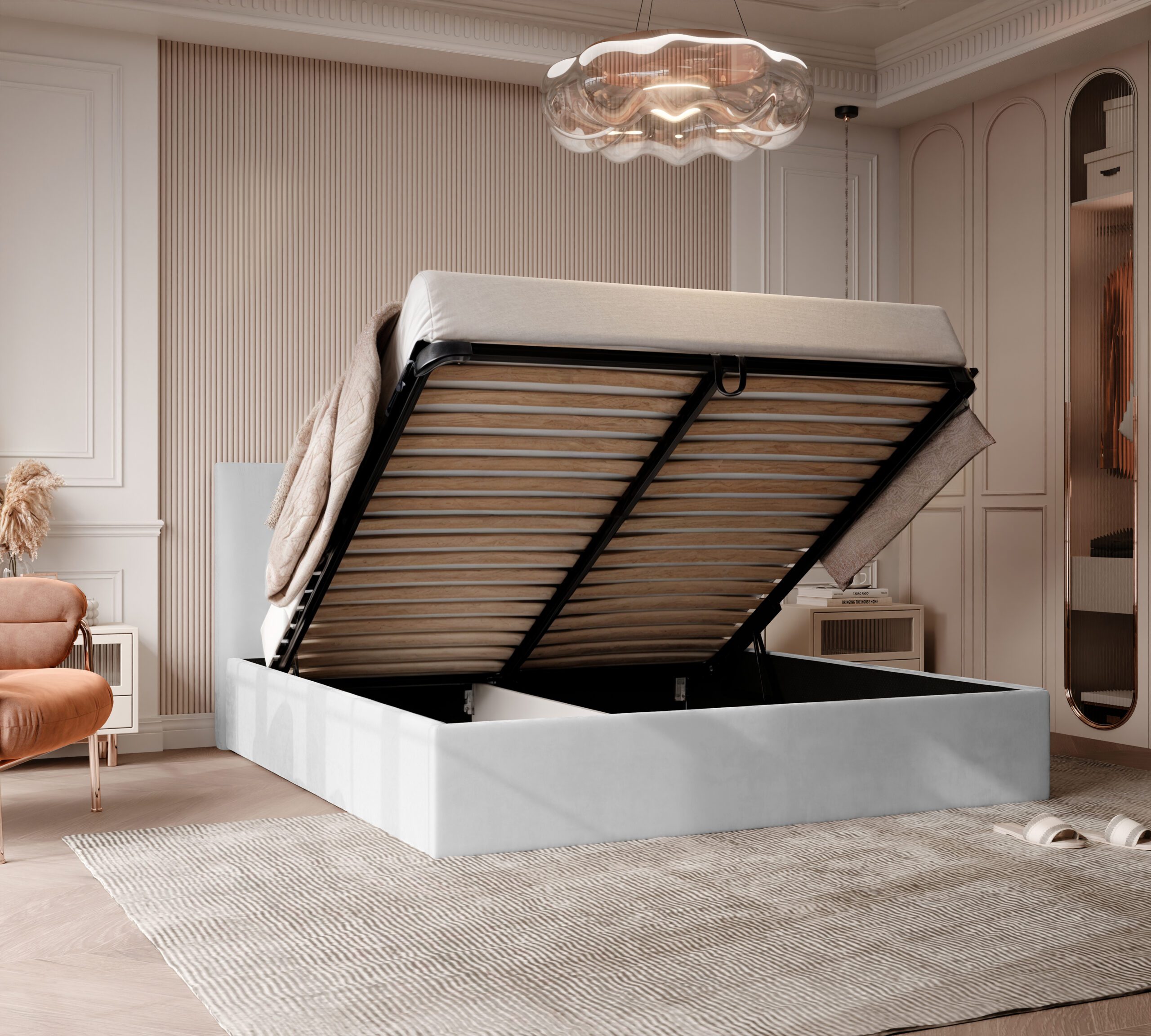 Przy wyborze stelaża metalowego wyposażone jest w praktyczną funkcję przechowywania, co czyni je idealnym rozwiązaniem dla osób, które cenią sobie funkcjonalne rozwiązania w domu. Mechanizm unoszenia materaca umożliwia łatwy dostęp do pojemnego schowka znajdującego się pod całą powierzchnią łóżka, co doskonale sprawdza się do przechowywania pościeli, koców, czy innych rzeczy.