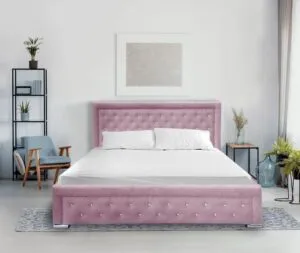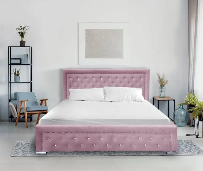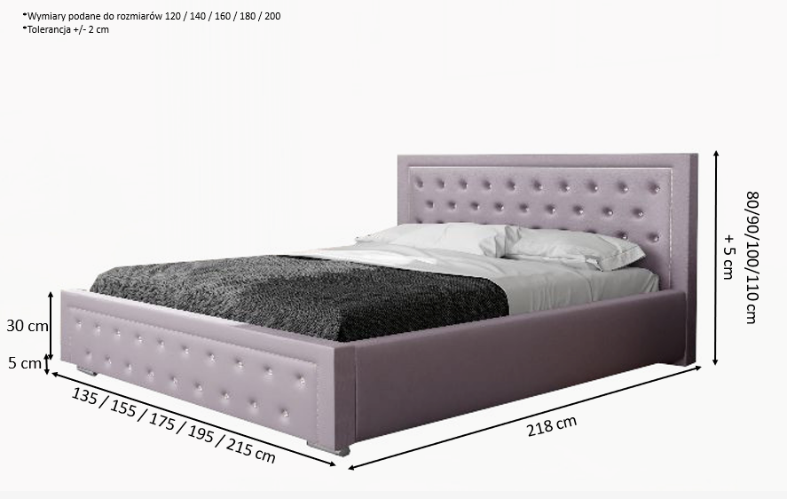 - Luksusowe detale – błyszczące diamenty i otoczka z cyrkonii nadają łóżku prestiżowy charakter.