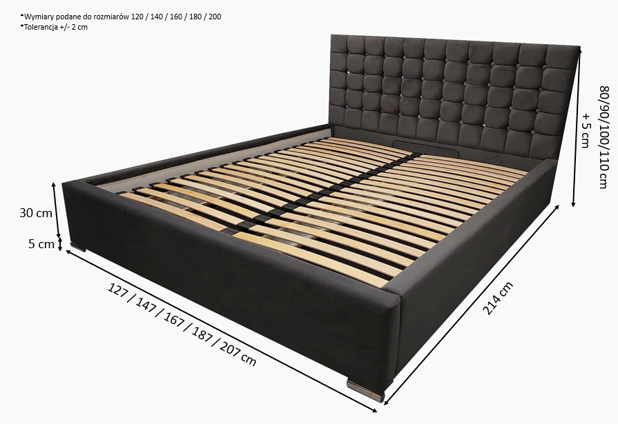 *Wybrany kolor nóg łączy się z kolorem diamentów na wezgłowiu.