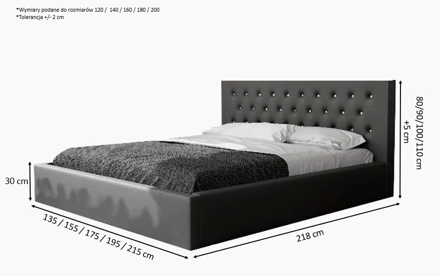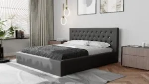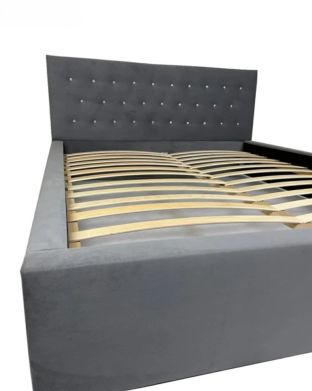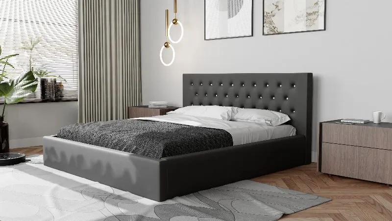 Wykończenie z diamentami na zagłowiu dodaje mu szyku i elegancji, co sprawia, że staje się ono nie tylko meblem do spania, ale także ozdobą wnętrza.