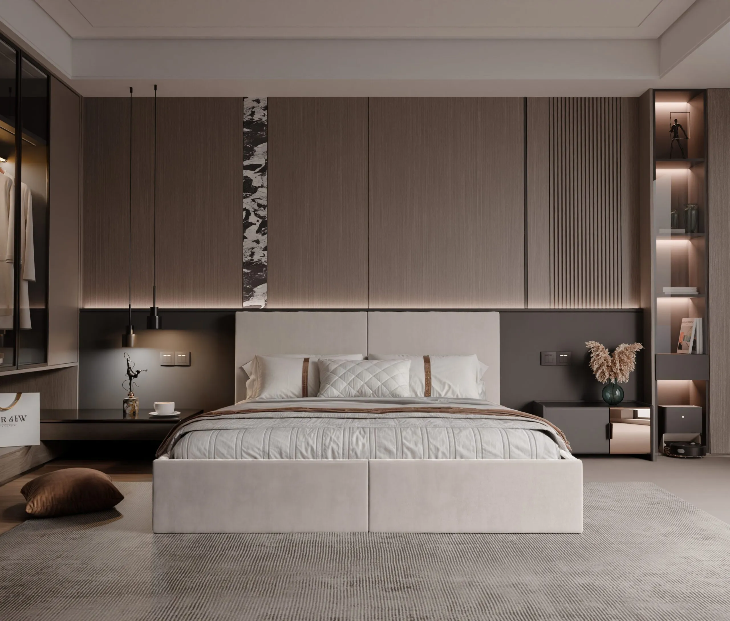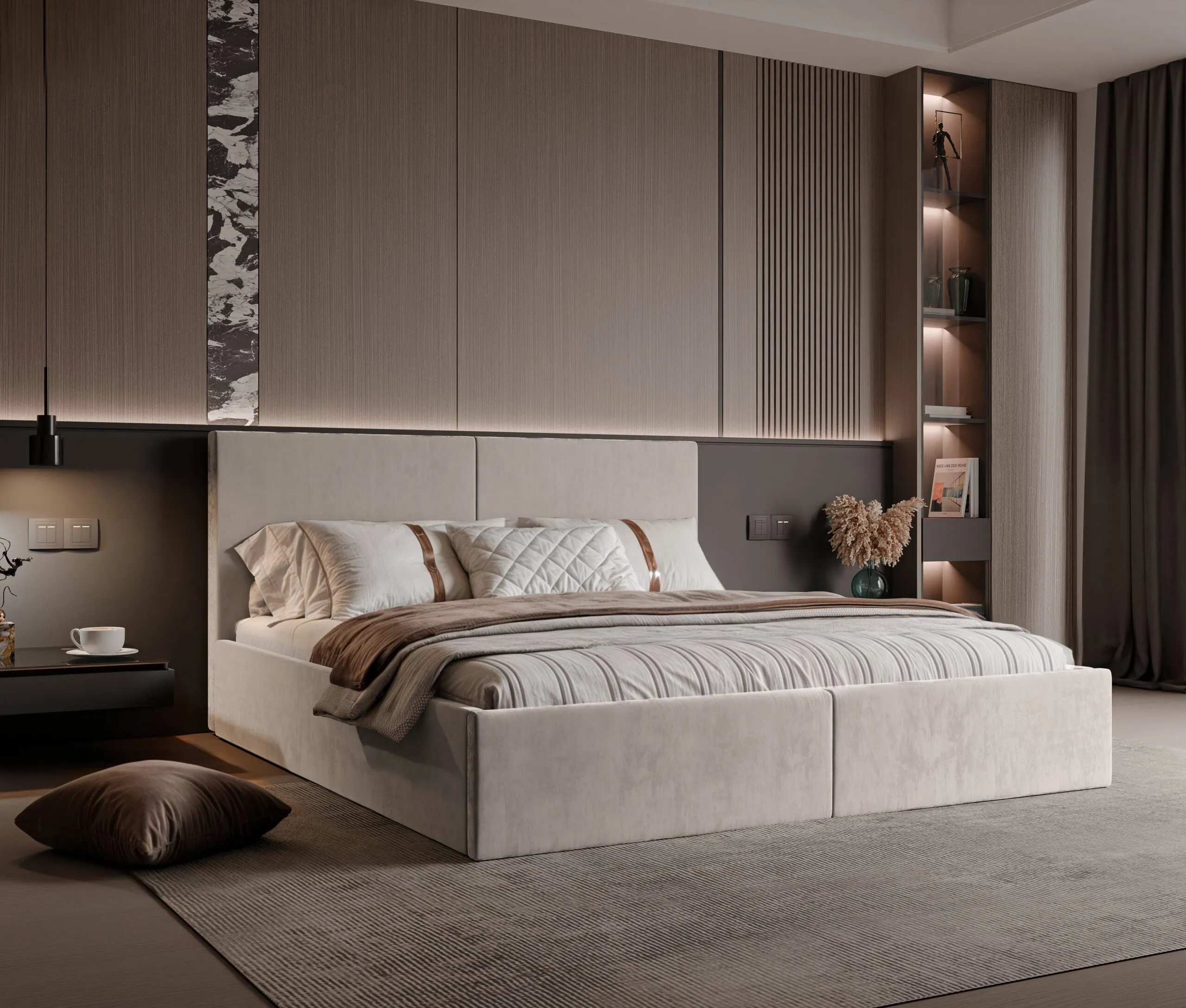 Łóżko sypialniane tapicerowane RIRI1 to doskonałe połączenie nowoczesnej elegancji z subtelną prostotą. Jego minimalistyczna forma sprawia, że świetnie wpisuje się zarówno w klasyczne, jak i nowoczesne aranżacje wnętrz.