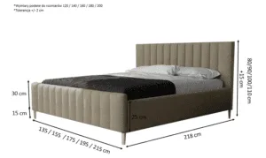 Tapicerowane łóżko sypialniane SIMON z szerszymi pierwszymi pasami oraz takim samym, wyższym panelem przednim, zapewniające elegancki i nowoczesny wygląd.