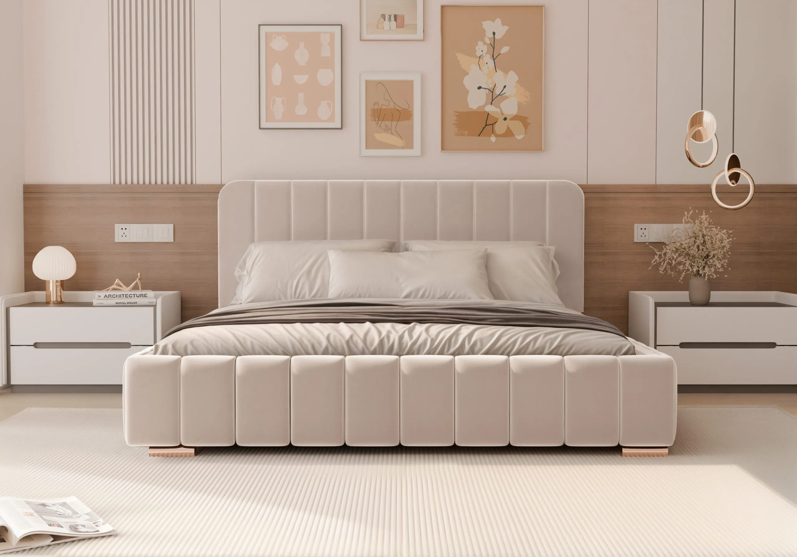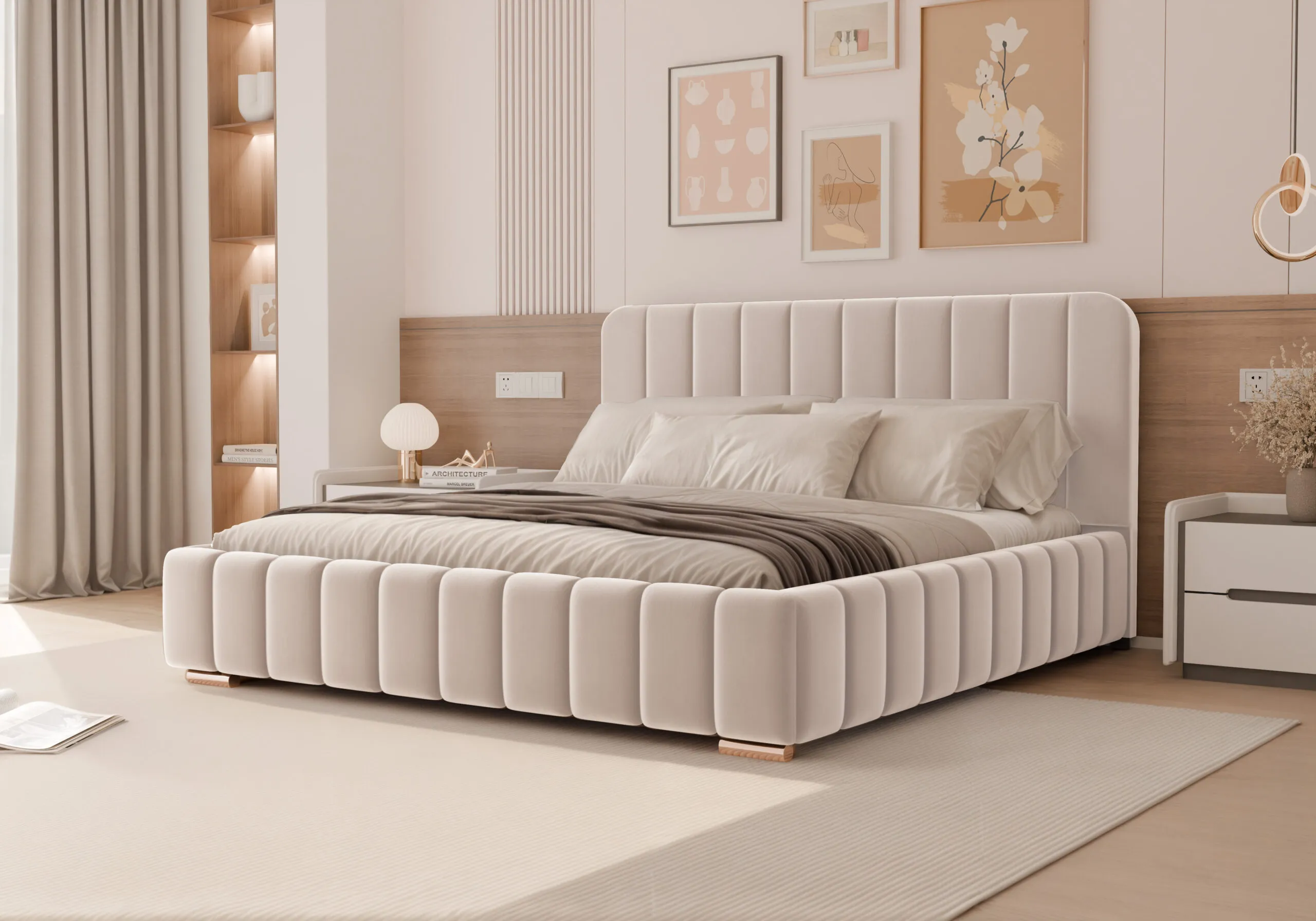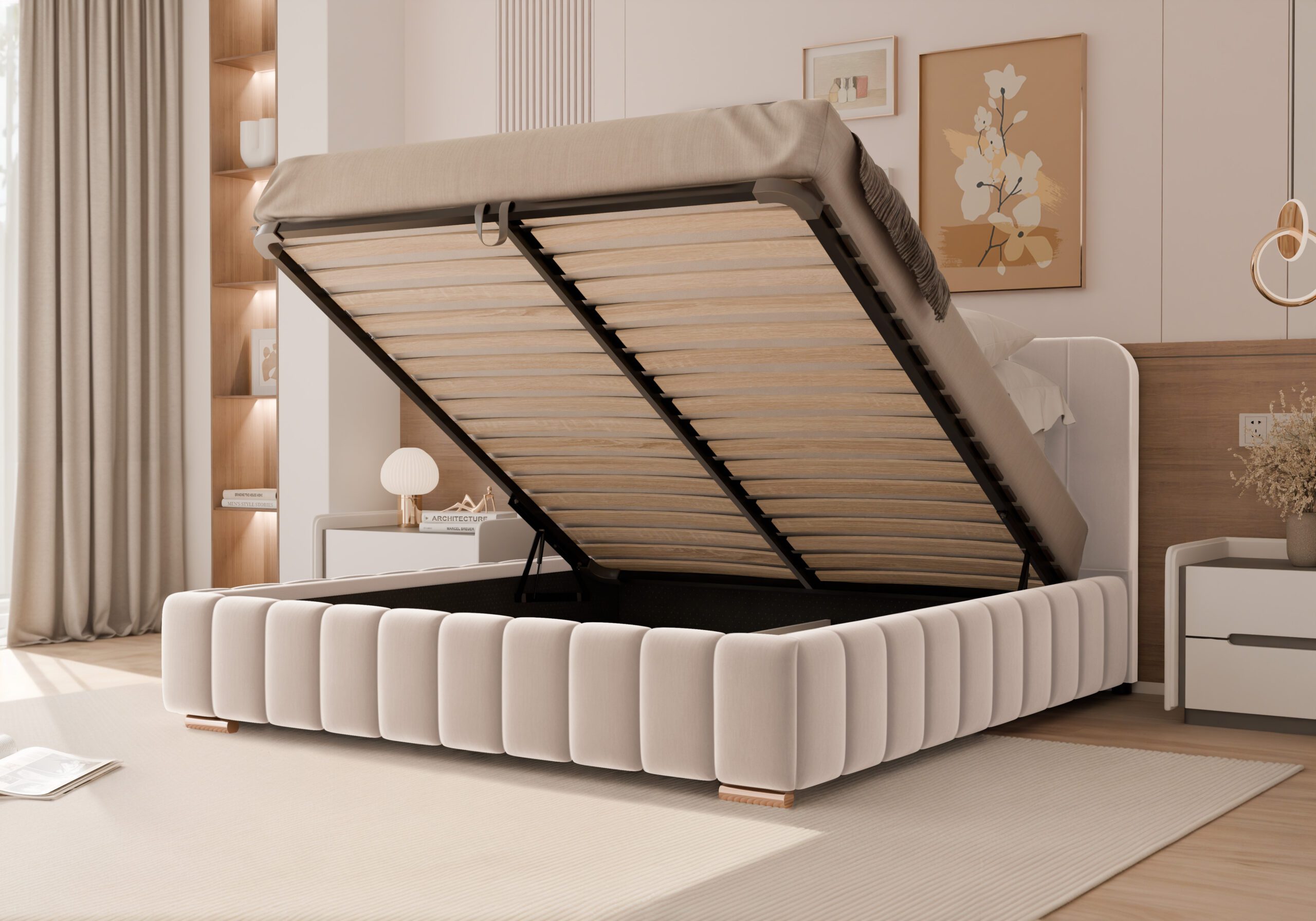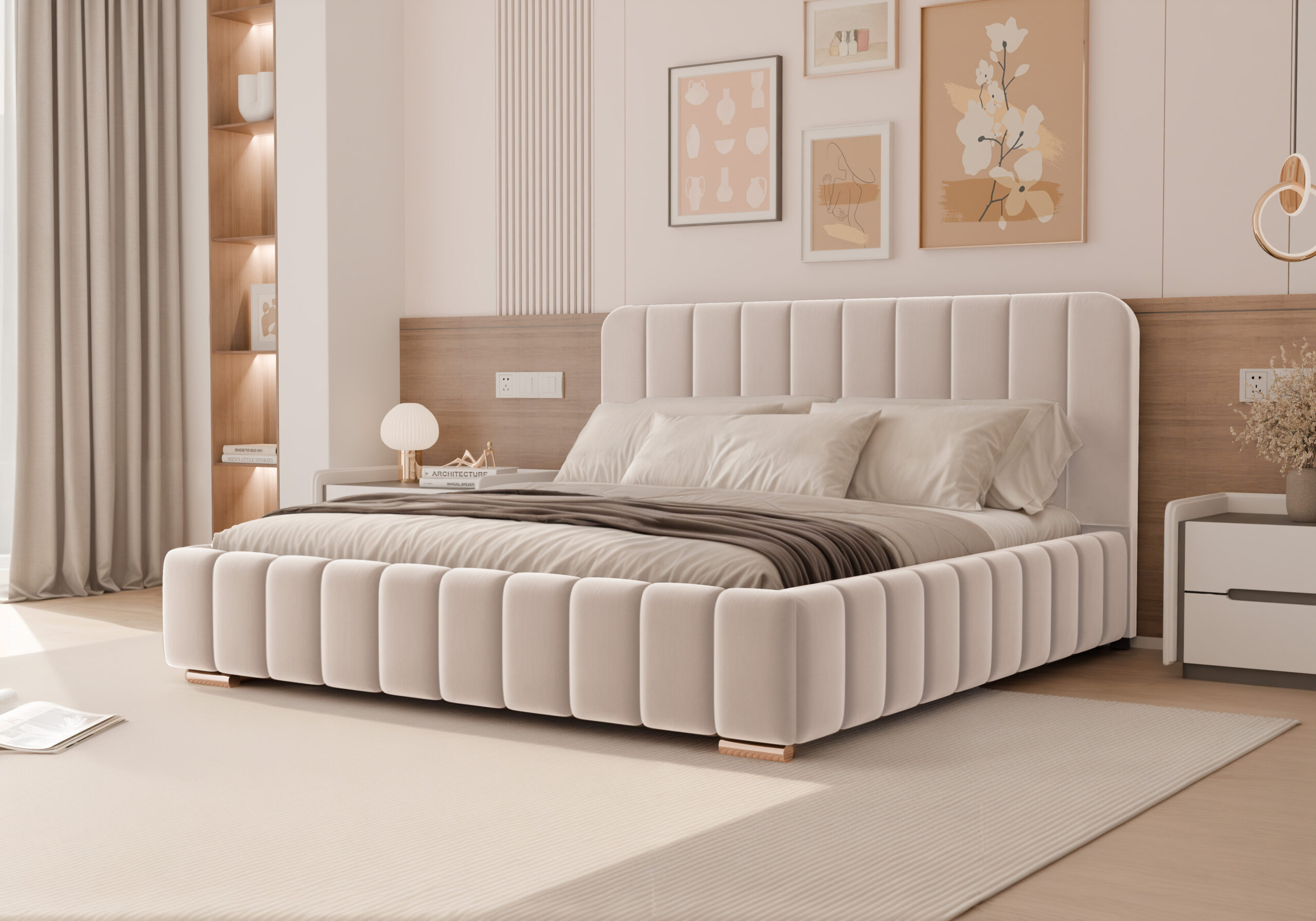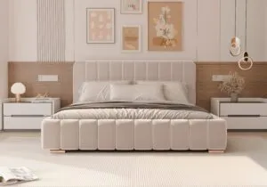 Tapicerowane łóżko sypialniane STORMI to eleganckie i nowoczesne rozwiązanie do każdej sypialni.