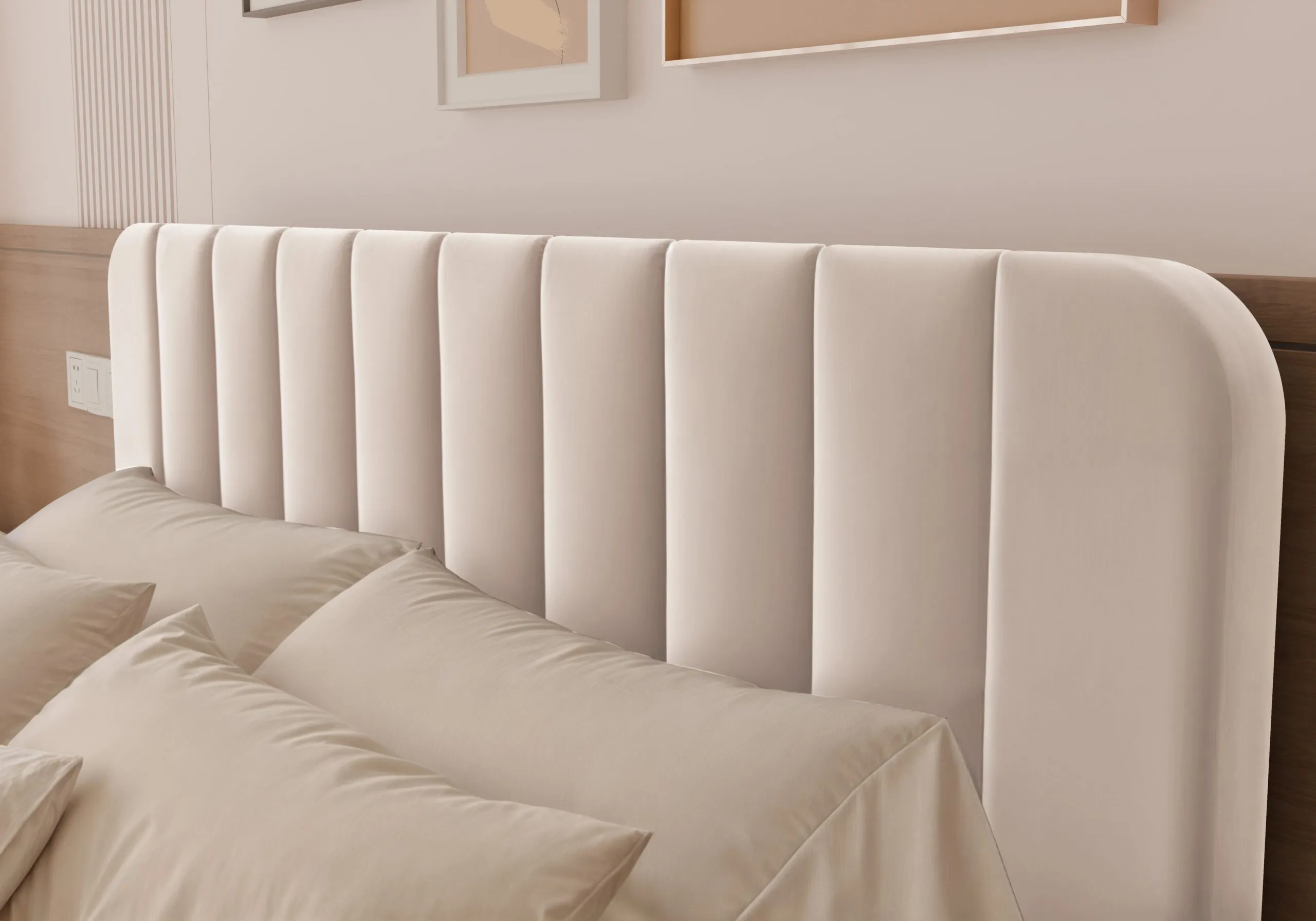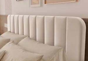 Posiada pionowe przeszycia na całej bryle, które nadają mu wyjątkowego charakteru. Dodatkowo zaokrąglony zagłówek sprawia, że łóżko prezentuje się bardzo stylowo i przytulnie.