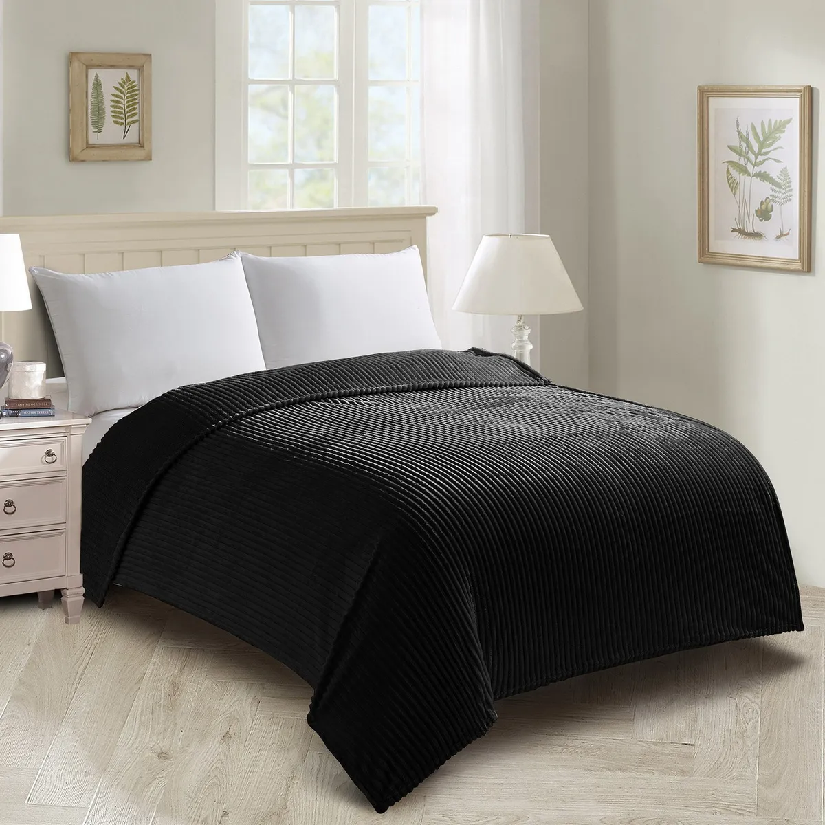 Narzuta 160 x 200 Czarna Prążkowana