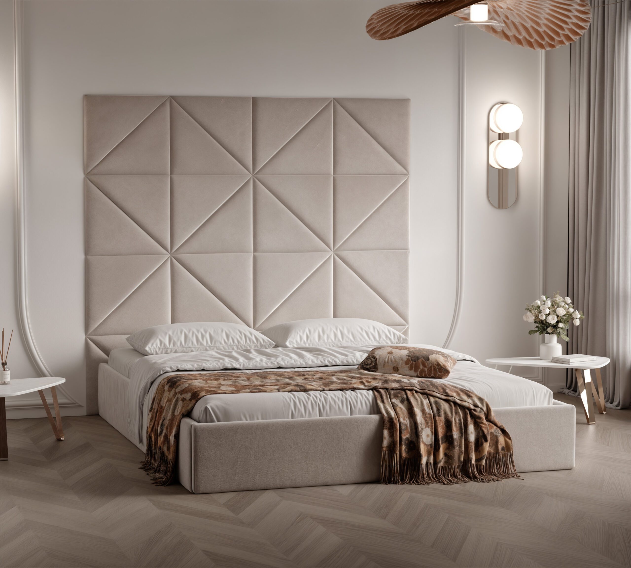 Komplet paneli tapicerowanych o wymiarze 50×50 cm to eleganckie i funkcjonalne rozwiązanie, które doskonale sprawdzi się w każdym wnętrzu.